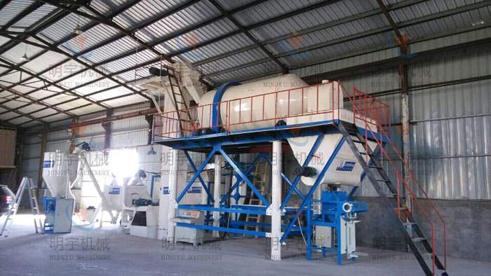 該生產(chǎn)線為雙配套生產(chǎn)設備,即砂漿混合及玻化微珠混合。其中,砂漿混合采用臥式無重力攪拌機,混合水泥、沙子、添加劑等,具有混合時間短、均勻度高的優(yōu)點。無軸滾筒式玻化微珠專用混合機,內(nèi)部機構(gòu)設計獨特,能保證物料在原始狀態(tài)下均勻混合,同時將破損率降低。該配套設備是目前生產(chǎn)單組份無機保溫砂漿較為科學合理的生產(chǎn)模式。