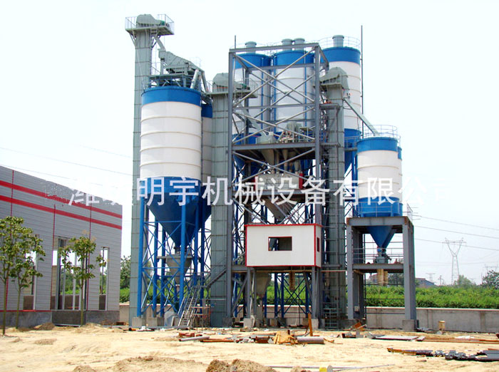 大型預(yù)拌砂漿生產(chǎn)線,主要由原料儲存?zhèn)}、配料系統(tǒng)、待混倉、2-6立方主混合機、原料儲存?zhèn)}、輸送機、電腦自動計量包裝機(適應(yīng)于閥口袋)、電控系統(tǒng)等組成。適應(yīng)于普通干混砌筑砂漿的生產(chǎn)(如:抹灰砂漿、砌筑砂漿地坪砂漿、裝飾砂漿、防水砂漿等)?;旌蠙C內(nèi)膽和機件全部采用專用耐磨材料制造,耐磨性特別強,使用壽命長,具有國內(nèi)同類產(chǎn)品不可比擬的優(yōu)越性,在同行業(yè)中占據(jù)重要地位。整套設(shè)備性能穩(wěn)定,物料混合均勻,具有能耗低、投資少、見效快、占地小、操作簡單等諸多優(yōu)點,5-8人即可操作,每次可以混合砂漿4-6噸,每小時可生產(chǎn)20-40噸左右。